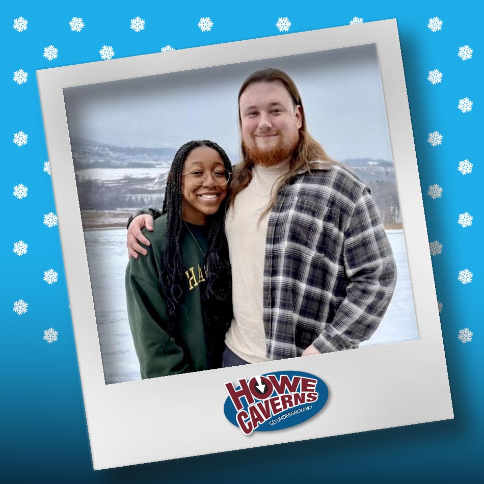Meet Jade and Aidan. Jade grew up in Memphis, surrounded by lots of family and raised by a very loving father, someone she says had the biggest influence on her life growing up, and still does to this day. Aidan grew up in the Schodack area of New York and still lives there today. Now, he’s visiting Howe Caverns for the first time in over 10 years, this time with someone he’s hoping to create new memories with. For Jade, this is her first visit ever! Aidan mentioned that the boat ride felt way longer this time compared to his last visit. Jade, on the other hand, said all she could focus on was how chilly the cave was, especially since back home it’s probably in the high 80s.