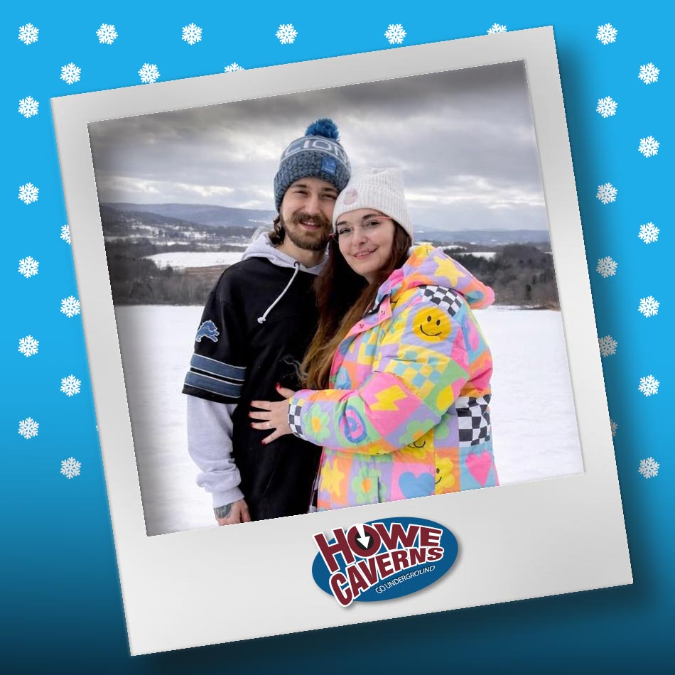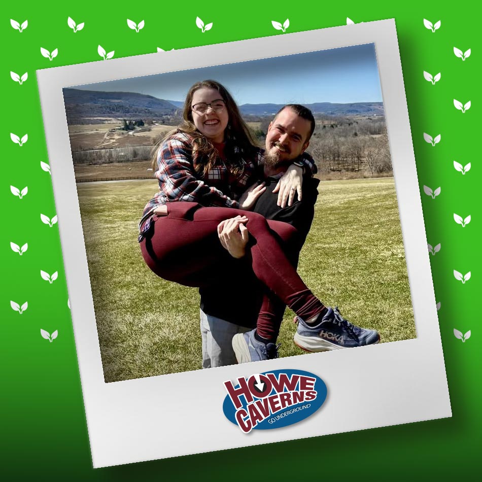 Meet Mikayla and Andrew! Today, Andrew asked Mikayla to marry him here at Howe- a place he had quietly chosen as the perfect setting for this big moment. After more than 20 years of friendship, first meeting at just 13 and now celebrating love at 31 and 33, he knew this setting reflected their story perfectly, especially because of how deeply Mikayla connects with nature. Andrew shared that once he truly recognized how grounded and in tune with the earth Mikayla is, discovering the Bridal Altar inside Howe Caverns made everything fall into place. As he put it, “It just made the most sense to be entirely surrounded by nature as best as we could.”
