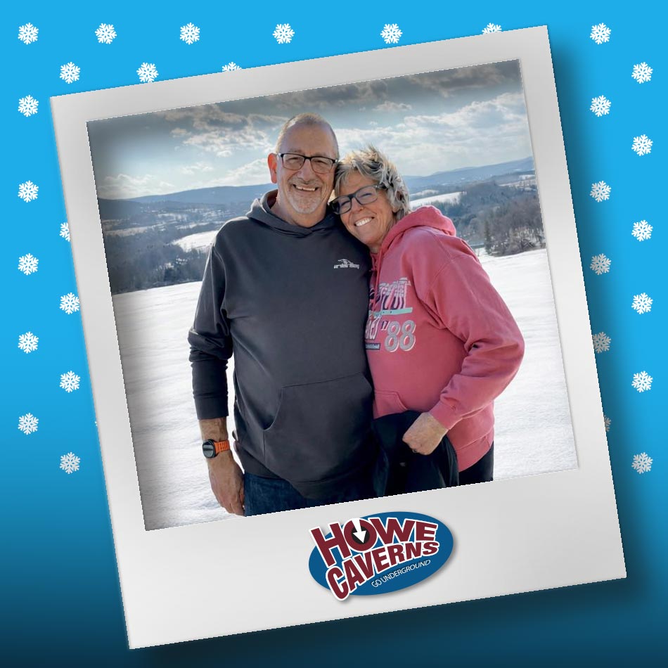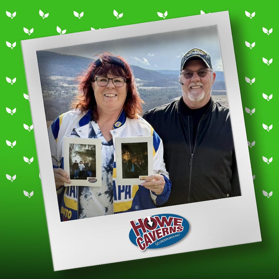 ) they came to Howe Caverns as part of their honeymoon trip. Recently, their son Scott, asked if we had an online shop because he wanted to get his parents sweatshirts for their anniversary. Our inventory changes rapidly so online shopping is not something we offer BUT our guest services team members are always more than happy to help! Scott arranged a FaceTime call with Betsy, and together, they shopped to find the perfect gifts! Scott was kind enough to send us this beautiful photo of his mom and dad in their Howe Caverns sweatshirts AND a photo from 1984 on their honeymoon at here at Howe. Thank you, Scott!